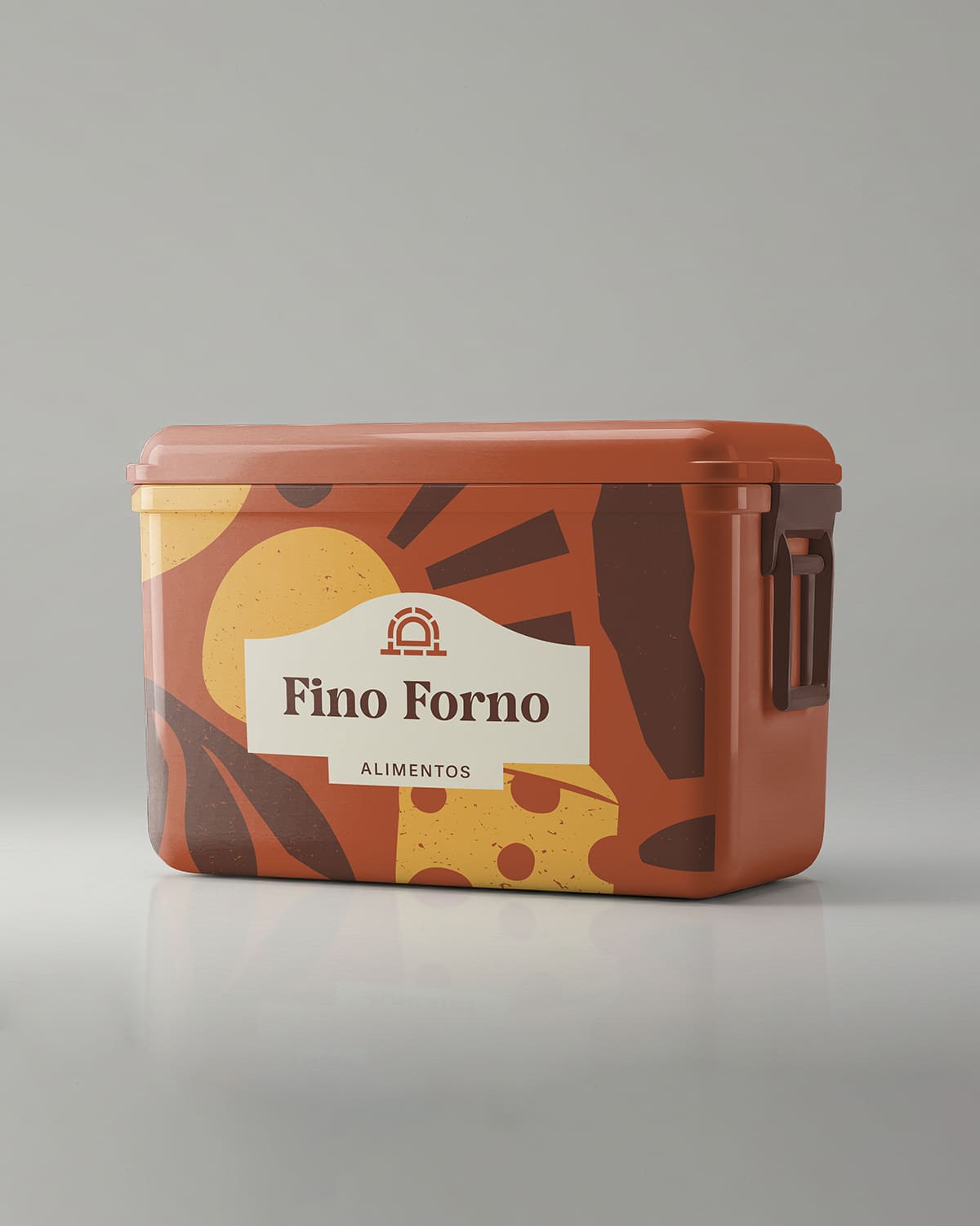 Desenvolvemos o naming e a identidade visual da Fino Forno. A marca precisava ser comercial e acolhedora, unindo o ícone do forno, cores terrosas e tipografia clássica para traduzir tradição com proximidade.